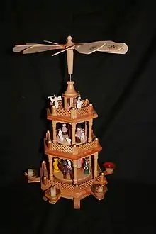 Une pyramide de Noël (en allemand : Weihnachtspyramide) est un objet décoratif traditionnel associé aux fêtes de Noël, principalement produit et utilisé en Allemagne. Originaire de la région des Monts Métallifères (en allemand : Erzgebirge), c'est une sorte de carrousel à un ou plusieurs niveaux utilisant un principe physique simple afin d'obtenir un mouvement : la combustion de bougies génère un courant d'air chaud qui met en mouvement une hélice située au sommet d'un axe, lequel entraîne un ou des plateaux où sont fixées des figurines qui se mettent à tourner. Généralement construite en bois, la pyramide de Noël peut présenter des thèmes chrétiens (crèche, anges, rois mages...) ou profanes (Père Noël, bonhomme de neige, animaux de la forêt...).