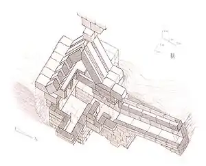 | Pyramide du culte | 5,2 m | ~4,5 m | 60° | ||||||||||||||||