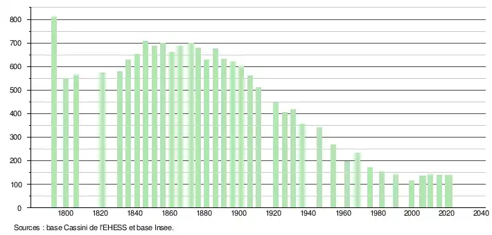 - Population municipale légale en vigueur au 1er janvier 2024, millésimée 2021, définie dans les limites territoriales en vigueur au 1er janvier 2023, date de référence statistique : 1er janvier 2021.