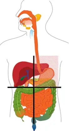- Le quadrant supérieur droit (QSD ou RUQ en anglais)