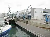 Dans les ports maritimes, les levées de pierres sont remplacées par des ouvrages de maçonnerie constitués d'un mur de soutènement perpendiculaire au niveau de l'eau et longé d'une chaussée ou d'une plate-forme permettant l'accostage et les opérations de débarquement et d'embarquement[1].