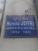Nommé en l'honneur du maréchal Joseph Joffre, ce quai a d'abord été le « quai d'Occident » et partie du quai Tilsitt[5].