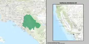 À partir du redécoupage de 2020, le 45e district du Congrès de la Californie est situé en Californie du Sud. Elle comprend l'ouest du Comté d'Orange et l'est de Los Angeles.