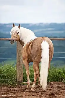 Les reins sont larges et puissants[16]. La queue est attachée assez bas[80],[83] et profondément[88]. Les crins de queue sont le plus souvent clairsemés[88], soyeux et longs mais peu épais[84]. Il est commun de photographier ce cheval de trois quarts dos afin de mettre son arrière-main en valeur[81].