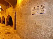 Sur la façade des 4 synagogues séfarades, la plaque no 2 Sephardi synagogues (בתי הכנסת הספרדיים).