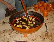 La queimada est un punch fabriqué à partir d' eau-de-vie galicienne ( marc de raisin de Galice ) - un spiritueux distillé des restes de la vinification - et aromatisé avec des herbes spéciales ou du café, auxquels on ajoute du sucre, du zeste de citron, des grains de café et de la cannelle. Elle est traditionnellement préparé dans une citrouille creuse.