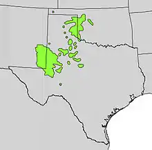 Quercus havardii occupe environ 2 à 3 millions d'hectares dans le sud des Grandes Plaines d'Amérique du Nord[2]. Il est originaire de l'ouest de l'Oklahoma, de l'ouest du Texas, de l'est du Nouveau-Mexique et de deux populations isolées du sud-ouest du Kansas. Une variété se produit également dans le nord-est de l'Arizona et le sud-est de l'Utah.