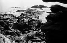 La partie Sud de la Côte Sauvage ; à l'arrière-plan la ville de Quiberon.