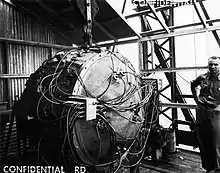 - It is important that the assembling of the parts should be done as rapidly as possible, in order to minimize the chance of a reaction getting started at a moment when the critical conditions have only just been reached. If this happened, the reaction rate would be much slower and the energy liberation would be considerably reduced; it would, however, always be sufficient to destroy the bomb. (Il est fondamental que l'assemblage critique se fasse aussi rapidement que possible, de manière à éviter que la réaction ne démarre alors que la criticité vient à peine d'être atteinte. Dans ce cas, le taux de réaction serait bien moindre, et l'énergie libérée serait considérablement réduite ; elle serait néanmoins toujours suffisante pour détruire la bombe)[12].