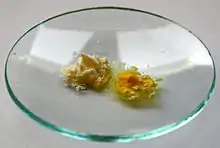 - Après refroidissement, l'ajout au goutte à goutte d'une base comme l'ammoniaque ou la soude concentrée donne une coloration orange au précipité si celui-ci contient des acides aminés aromatiques (phénylalanine, tyrosine)[1].