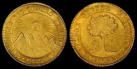 Pièce de 4 réaux de la République fédérale d'Amérique centrale (1835). Frappée à la monnaie de San José, au Costa Rica. 697 pièces ont été frappées[1].