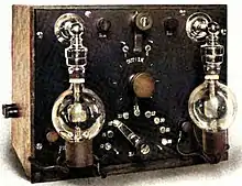 - En 1915 : arrivée d’amplificateur audio à lampes électroniques (en forme de grosses boules) pour le casque audio et le haut-parleur pour les postes à galène.