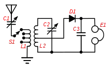 - C1: et C2: condensateurs variables à air de 500 pF environ pour la radiodiffusion des petites ondes et des grandes ondes ou (quelques dizaines de picofarad pour la bande VHF)