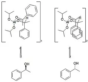 Il est aussi possible de réaliser la réduction de Meerwein-Ponndorf-Verley en présence d'un ligand chiral sur l'aluminium[8].