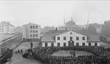 En , dans le cadre de l'opération Weserübung, l'Allemagne nazie envahit le Danemark. L'Althing décide alors d'accorder au gouvernement islandais la gestion de la politique étrangère de l'île, domaine jusqu'alors réservé au gouvernement danois[6]. Le gouvernement islandais ayant refusé de coopérer avec le Royaume-Uni — ce qui aurait impliqué que l'Islande abandonne sa neutralité[7] — les forces armées britanniques envahissent l'Islande le . En 1941, après décision de l'Althing, Sveinn Björnsson devient régent du royaume et se voit attribuer les prérogatives normalement détenues par le roi. L'occupation par l'armée britanniques est suivie de l'arrivée de troupes américaines en janvier 1942.