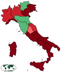 | Total Italie | 12 709 536 | 40,05% | 19 025 254 | 59,95% | 31 997 916 | 68,48% |