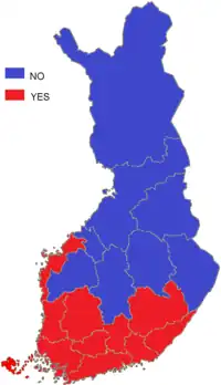 Référendum finlandais sur l'adhésion à l'Union européenne 1994, résultats par régions