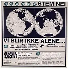 Document invitant à voter contre l'adhésion de la Norvège à la Communauté économique européenne en 1972.