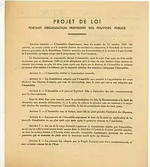 Ce projet de loi n'a donc pas pour seule vocation de définir la procédure d'adoption de la Constitution, mais aussi d'établir les rapports entre pouvoirs publics, dans un texte minimaliste de huit articles.