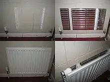 Bien que les feuilles soient appelées "réflecteurs", elles n'ont pas beaucoup d'effet sur la chaleur rayonnée ou sa réflexion. Comme les radiateurs fonctionnent à une température relativement basse, la loi de Stefan-Boltzmann [note 1] signifie qu'ils sont de faibles radiateurs de chaleur. La plupart de la chaleur d'un radiateur domestique est sous forme de courants de convection d'air chauffé. Lorsqu'une feuille réfléchissante a également une certaine capacité d'isolation contre la conduction (c'est-à-dire les pertes à travers le mur), elle peut avoir un effet utile. Ceci est plus prononcé lorsque le mur lui-même a une mauvaise performance d'isolation : dans un mur construit selon les normes modernes d'isolation, même cet effet peut être réduit à un avantage négligeable[réf. nécessaire].