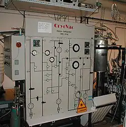 Un réfrigérateur à dilution 3He/4He est une catégorie de cryoréfrigérateur qui fournit un refroidissement continu aux températures cryogéniques aussi basses que 2 mK, sans pièces mobiles dans la région à basse température[1]. La puissance frigorifique est fournie par la chaleur de mélange des deux phases liquides riches en hélium 3 et en hélium 4, respectivement. C'est la seule méthode de réfrigération continue pour atteindre des températures au-dessous de 0,3 K[2].