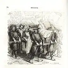 - Fuentes 2007, p. 97. « En Madrid, los artesanos representaban en torno al 40 por ciento de los urbanos alistados en los cinco batallones del cuerpo, un contingente muy superior al de cualquiera de los grupos que se pueden identificar como burguesía comercial o con las clases medias propietarias y profesionales, en las que se pensaba como principal soporte del régimen isabelino y columna vertebral de su milicia ».