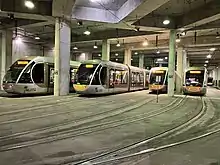 | 021-028 | Alstom Citadis 402[Note 2] | Tramway | Ligne aérienne de contact / Alimentation par batteries | 2010 | ![]() |