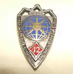 | SF de Colmar, puis 104e DIF | Elsenheim | 1er du 42e RIF | 42e RIF | ![]() | Surnom « Régiment de Neuf-Brisach ». Dans un écu au chef bastionné, une mappemonde coiffée du Soleil évoque les déplacements du régiment. As de carreau en pointe, attribut du régiment dans la 14e division (des as). |