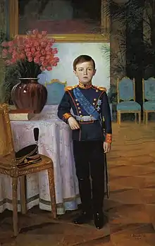Le tsarevitch Alexis Nikolaïevitch de Russie, vêtu de l’uniforme de sortie de commandant du régiment de la garde Moskovski