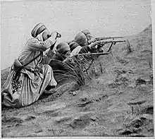 Le régiment début 1915 rassemblé pour la décoration du capitaine Khaled en Belgique. | |