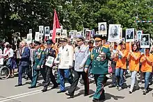 À l'époque de la Perestroïka (1985 à 1991) de Mikhaïl Gorbatchev, les citoyens prennent l'habitude de suivre les défilés militaires officiels en exhibant des portraits des membres de leur famillle ayant combattu dans les rangs de l'Armée rouge[3].