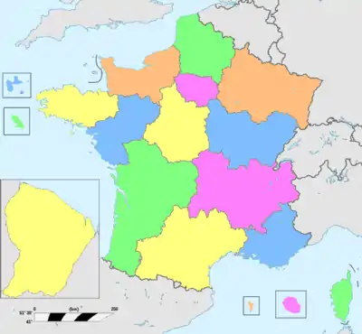 Pour partie héritières d'anciennes provinces et régions historiques, les régions sont créées sous leur forme actuelle à partir de 1956 et acquièrent un statut de collectivité locale en 1982, inscrit dans la Constitution depuis 2003. Au nombre de vingt-sept en 2015, elles sont au nombre de dix-huit depuis le [1] : treize régions ou collectivités assimilées à des régions en France métropolitaine (dont la Corse, qui est une collectivité territoriale unique exerçant les compétences d'une région), et cinq régions d'outre-mer (dont trois, Mayotte, la Guyane et la Martinique, sont également devenues des collectivités territoriales uniques). Ces cinq régions ultramarines bénéficient du statut de région ultrapériphérique de l'Union européenne.