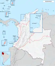 Elle comprend les archipels de San Andrés et Providencia, San Bernardo, Rosario, des îles côtières telles que Tierra Bomba, Fuerte et Tortuguilla en mer des Caraïbes, et les îles de Malpelo et Gorgona dans l'océan Pacifique.