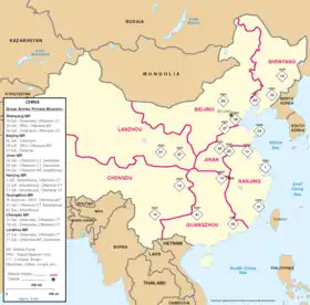 Chacune des sept régions militaires de la république populaire de Chine, Shenyang, Pékin, Lanzhou, Jinan, Nankin, Canton et Chengdu, dirige directement les troupes des différentes armes de l'armée populaire de libération, les unités logistique et les régions militaires provinciales (ou zones de garnison)[2] placées sous son autorité[3].