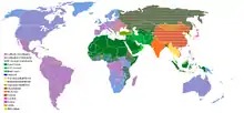 Bleu/Violet : ChristianismeVert : IslamOrange : Hindouisme