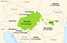 En Autriche, en Croatie, en Roumanie, en Slovaquie, en Slovénie et en Ukraine, le hongrois est une langue minoritaire reconnue[21]. En Roumanie[22] et en Slovaquie[23], il peut être utilisé dans l’administration des localités où la minorité hongroise atteint au moins 20 % de la population.