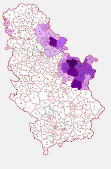 Parmi d’autres langues minoritaires, le roumain aussi a le statut de « langue d’usage officiel » en Serbie, dans les localités où la proportion de roumanophones atteint les 15 %[66]. Ces localités sont énumérés dans un document du Secrétariat provincial pour l’éducation, les réglementations, l’administration et les minorités nationales – communautés nationales de Voïvodine[67]. Cependant, la langue maternelle des Roumains de la vallée du Timok a un autre statut.