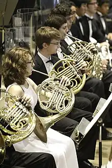 Pupitre de cors dans un orchestre.
