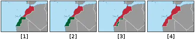 Le Maroc annexe alors la partie du territoire jusqu'alors concédée à la Mauritanie. Il construit une barrière de défense, le mur marocain, dans les années 1980, afin de déjouer les raids du Polisario. Après un enlisement progressif du conflit, le Maroc et le Front Polisario acceptent un cessez-le-feu le [13]. Depuis le cessez-le-feu, environ 190 militaires de la Mission des Nations unies pour l'organisation d'un référendum au Sahara occidental (MINURSO) surveillent les forces en présence ainsi que la préparation du référendum sur le statut final. Celui-ci a été repoussé à plusieurs reprises à cause du désaccord des deux parties sur le recensement des votants[réf. nécessaire].