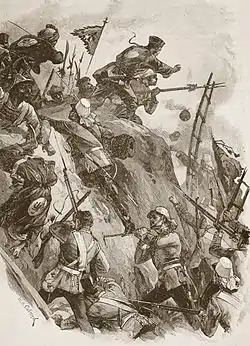 Si à l’autre extrémité du pays, la conquête du Chaco argentin, effectuée dans les années 1881 à 1889, apparaissait plus aisée a priori compte tenu des effectifs indigènes à affronter, nettement moindres, elle dut cependant faire face à de graves difficultés de ravitaillement en eau et à des problèmes sanitaires chez les expéditionnaires. La campagne la plus importante, menée par le ministre de la Guerre Benjamín Victorica, eut lieu en 1884[70]. Quoique la conquête du Chaco ne puisse être considérée comme tout à fait achevée avant les dernières années du XIXe siècle, c’est sous le gouvernement du général Roca que la majeure partie de cette opération militaire fut menée à bien[70].