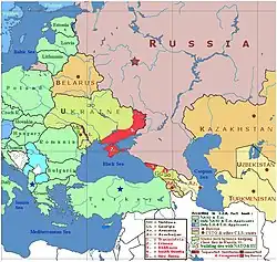 La Force conjointe de maintien de la paix sur la frontière moldo-transnistrienne (PFK) comprenant des éléments triparties de la CEI (russe, moldave et transnistrienne) est déployée le le long du Dniestr et autour de Tighina. Dans cette force, Russes et Transnistriens sont 894 (402 soldats russes et 492 transnistriens), les Moldaves sont 355, et il y a aussi 10 observateurs militaires ukrainiens[29],[30].