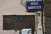Plaque matérialisant le Chemin d'Intérêt commun n°3 à Oms (Pyrénées-Orientales)