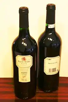 - Reserva (ou Reserva Especial) indique que le vin a un niveau d'alcool d'au moins 0,5 % supérieur au minimum régional requis et qu'il est millésimé ;