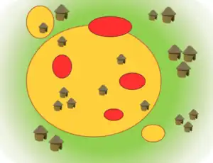 - Une ou plusieurs aires centrales (anglais : core areas[17]), comprenant un écosystème strictement protégé qui contribue à la conservation des paysages, des écosystèmes, des espèces et de la variation génétique. En France, l'aire centrale peut se s'appuyer sur un cœur de cœur de parc national (Cévennes[18], Guadeloupe), une réserve naturelle nationale ou régionale (Camargue, bassin de la Dordogne).