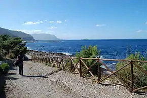 - Au nord-ouest, à partir du quartier Barcarello à Sferracavallo, un chemin longe le littoral au nord de la réserve. Il passe devant une aire de pique-nique, puis grimpe sur le versant nord jusqu'à un point de vue sur la baie de Sferracavallo. Là encore, l'extrémité (Punta Tara) est difficile d'accès et le naturisme y est pratiqué[11].