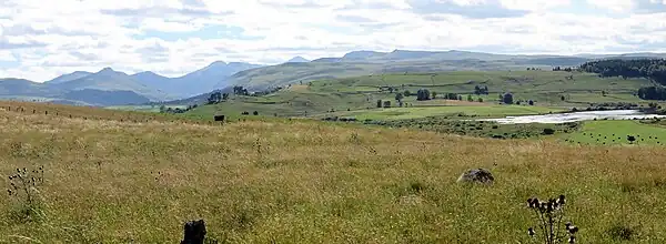 Vue depuis le Cézallier : Vallée de la Santoire, plateau du Limon et Monts du Cantal.
