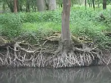 La faible profondeur de la nappe phréatique ainsi que sa température constante, fixée autour de 10 degrés tout au long de l'année, permettent au sol de ne pas geler profondément en hiver. En outre, la présence de cette nappe, qui est constamment renouvelée en eau, permet aux arbres de résister aux chaleurs estivales[A 1].
