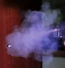 Les résidus peuvent aussi sur une cible ou sur le vêtement d'un tireur être rendus visibles par coloration chimique, pouvant aussi montrer si un orifice est celui de l'entrée ou de la sortie de la balle, ce qui permet de préciser la direction du tir[8].