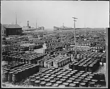 - La térébenthine filtrée était mise en tonneaux que l'on empilait dans des magasins bien dallés en pente et très propres; le temps de l'emmagasinement et la température de l'air déterminaient des fuites au travers des joints des douves, et opèraient ainsi une filtration spontanée. La térébenthine recueillie dans un réservoir où aboutissaient les pentes du dallage, était plus pure et se vendait plus cher que celle obtenue de la filtration;