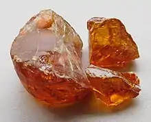 - Colophane, Brai sec, Arcanson — Substance solide à froid, vitreuse, transparente, inodore, cassante, d'un jaune d'or obtenue à partir de la térébenthine, après évaporation de l'essence de térébenthine. Quand on distille la térébenthine pour en extraire l'essence, il reste dans la cucurbite ce résidu qui pouvait être aussi obtenu par la distillation du galipot. En mélangeant à chaud trois parties de galipot et une partie de colophane on préparait une substance connue sous le nom de Poix résine ou de Résine jaune[25]. La terminologie américaine moderne distingue gum rosin — la colophane obtenu par distillation à partir de la gemme, c'est-à-dire à partir de l'oléorésine récoltée sur des pins vivants, par opposition à la colophane provenant du traitement de bois abattus[17] appelée wood rosin, (colophane de bois, colophane extractive[18].
